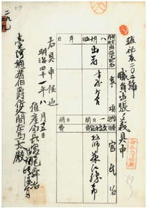 二九 台湾総督府民政部殖産局長代理峡謙斉ノ具申ニ依リ台湾総督府技師藤江勝太郎ニ事務打合ニ付キ出府ヲ命ス