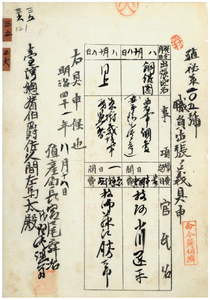三五 台湾総督府民政部殖産局長代理峡謙斉ノ具申ニ依リ台湾総督府民政部殖産局技師小川運平ヲ農事調査ニ付キ安平鎮出張ノ序ヨリ銅鑼圏ヘ出張ヲ命ス