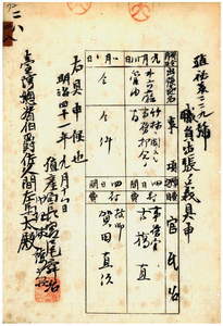 二八 台湾総督府民政部殖産局長代理峡謙斉ノ具申ニ依リ台湾総督府事務官古橋直ト台湾総督府技師賀田直治ニ竹林ニ関スル事務打合ノ為メ斗六庁管内ヘ出張ヲ命ス