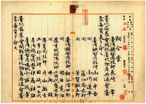 四 台湾総督府技師長崎常ニ台北庁農会開設台北物産共進会審査委員長ヲ、台湾総督府技師ノ山田申吾・小川運平・藤江勝太郎・芳賀鍬五郎・細谷源四郎・岡田寛治、台湾総督府民政部殖産局農事試験場技師ノ小田代慶太郎・井街顕・台湾総督府専売局技師片山徹吉・台湾総督府臨時台湾工事部技師田崎二三次・台湾総督府技手伊藤祐雄・台湾総督府嘱託小西成章ニ台北庁農会開設台北物産共進会審査委員ヲ命ス (1908-10-01~1908-10-06);台湾総督府民政部殖産局長宮尾舜治ノ具申ニ依リ臨時台湾糖務局技師吉田碩造ニ台北庁農会開設台北物産共進会審査委員ヲ命ス(1908-10-31~1908-11-02)