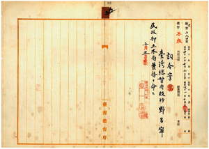 五 台湾総督府民政部土木局長心得長尾半平ノ内申ニ依リ台湾総督府技師野呂寧ニ台湾総督府民政部土木局兼務ヲ命ス