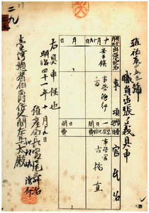 二九 台湾総督府民政部殖産局長代理峡謙斉ノ具申ニ依リ台湾総督府事務官古橋直ニ事務施行ノ為メ安平鎮ヘ出張ヲ命ス
