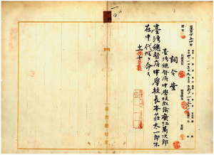 一〇 台湾総督府中学校長本荘太一郎ノ内申ニ依リ台湾総督府中学校教諭広江万次郎ニ台湾総督府中学校長本荘太一郎ノ東京・京都・広島ノ二府一県ヘノ出張不在中ノ代理ヲ命ス