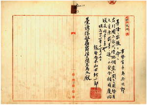 五〇 事務官手島兵次郎ニ外国人永代借地調査ニ関スル用務ノ為メ基隆ヘ出張ヲ命スル儀ニ付キ台湾総督府民政部総務局長山田新一郎ヨリ内申ノ件