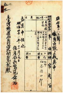 五三 台湾総督府民政部殖産局長宮尾舜治ノ具申ニ依リ台湾総督府技師細谷源四郎ニ石碇堡鹿リョ庄地内石炭鉱区内変災取調ノ為メ罵仔リョ庄鉱毒取調ノ為メ基隆庁管内ヘ出張ヲ命ス