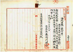 九 台湾総督府鉄道部長長谷川謹介ノ内申ニ依リ台湾総督府鉄道部技師稲垣兵太郎ニ鉄道視察ノ為メ清国厦門・汕頭・潮州・広東・澳門・英領香港地方ヘ出張ノ件