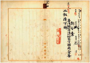 檢察官西內金吾病氣危篤ニ付特旨敘位、賞與、昇級ノ件