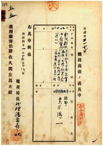 技師素木得一島出內張ノ件