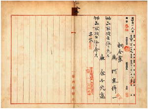 八 台湾総督府民政部土木局長代理高橋辰次郎ノ内申ニ依リ台湾総督府属阿度停一ノ物品取扱主任ヲ免シ台湾総督府雇金子光高ニ物品取扱主任ヲ命ス