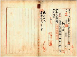 二一 彰化庁長小松吉久ト基隆庁長横沢次郎ノ上申ニ依リ基隆庁属兼基隆庁通訳田中徳吉ヲ彰化庁属ニ任ス