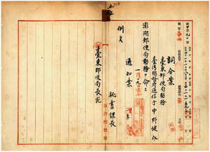 五五 澎湖郵便局長萩原寛太郎ノ内申ニ依リ台東郵便局勤務台湾総督府通信手中野健介ニ澎湖郵便局勤務ヲ命ス
