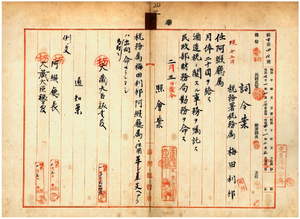 二 台湾総督府民政部財務局長代理峡謙斉ノ内申ニ依リ兵庫県龍野税務署在勤税務署税務属梅田利邦ヲ台湾総督府阿緱庁属ニ任シ酒造税ニ関スル事務ヲ嘱託シ台湾総督府民政部財務局勤務ヲ命ス