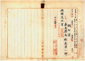 七 嘉義庁属秋葉準一郎ハ疾病ニ罹リ職ニ堪ヘサル旨ヲ以テ辞職願ニ依リ本官ヲ免ス