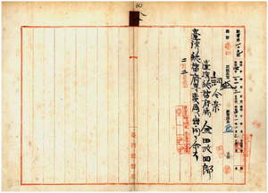 總督府屬金田政四郎總督府專賣局ヘ出向