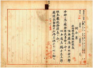 一〇 恒春庁長武藤針五郎ノ内申ニ依リ恒春庁税務課長兼総務課長恒春庁属吉田幸次郎ニ本務ヲ免シ総務課長専務ヲ命シ、恒春庁属橋本忠太郎ニ恒春庁税務課長ヲ命ス