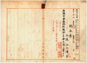 二六 台湾総督府民政部通信局長鹿子木小五郎ノ内申ニ依リ元台湾総督府雇江口伝吉ニ在職中事務格別勉励ニ付キ一時金ヲ賞与ス