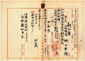 五 台湾総督府民政部財務局長代理峡謙斉ノ内申ニ依リ山形県属明日米蔵ヲ阿緱庁属兼台湾総督府属ニ任シ台湾総督府民政部財務局勤務ヲ命ス