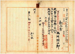六 台湾総督府民政部土木局長代理高橋辰次郎ノ内申ニ依リ関東酸曹株式会社技手馬渕国三郎ニ建築ニ関スル事務ヲ嘱託シ民政部土木局勤務ヲ命ス