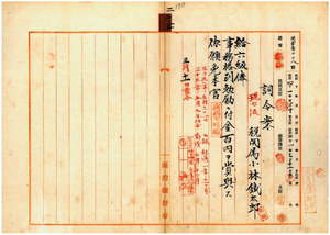 二五 淡水税関勤務台湾総督府税関属小林鉄太郎ハマラリアニ罹リ職ニ堪ヘサル旨ヲ以テ退官願ニ依リ昇級ノ上事務格別勉励ニ付キ一時金ヲ賞与シ本官ヲ免ス