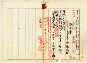 二八 台湾総督府通信手安藤篤助ハ麻刺里亜ニ罹リ職ニ堪ヘサル旨ヲ以テ電報ニヨル退官願ニ依リ増俸ノ上事務格別勉励ニ付キ一時金ヲ賞与シ本官ヲ免シ退官一時金ヲ給ス