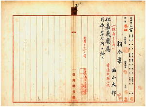 五六 嘉義庁長北原種忠ノ内申ニ依リ嘉義庁税務課勤務嘉義庁雇西山大作ヲ嘉義庁属ニ任ス