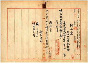 五七 澎湖庁長脇本彬ノ上申ニ依リ媽宮公学校勤務教授兼校長黒川亀吉退官ノ後任トシテ店仔口公学校勤務台湾公学校教諭兼校長中山翠ニ媽宮公学校ヘ転勤ヲ命ス