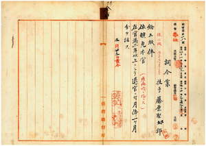 八六 台湾総督府民政部土木局勤務台湾総督府技手藤原堅三郎ハ疾病ニ罹リ職ニ堪ヘサル旨ヲ以テ辞職願ニ依リ昇級ノ上本官ヲ免シ事務格別勉励ニ付キ一時金ヲ賞与ス