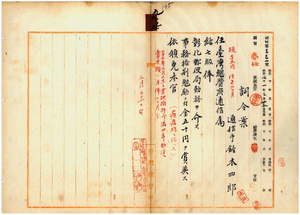 九五 彰化郵便局勤務台湾総督府通信手鈴木四郎ハ麻拉里亜ニ罹リ職ニ堪ヘサル旨ヲ以テ退官願ニ依リ台湾総督府通信属ニ任シ昇級ノ上彰化郵便局勤務ヲ命シ事務格別勉励ニ付キ一時金ヲ賞与シ本官ヲ免ス
