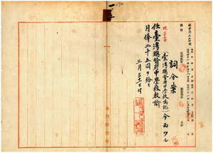 一〇五 台湾総督府中学校長本荘太一郎ノ内申ニ依リ台湾総督府中学校嘱託今西ツルヲ台湾総督府中学校教諭ニ任ス