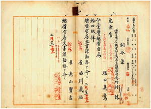 一〇九 台湾総督官房文書課長斎藤参吉ノ内申ニ依リ臨時台湾戸口調査部属兼台湾総督府属竹村諫ノ兼官ヲ免シ、臨時台湾戸口調査部属福田真鷹ヲ台湾総督府属ニ任シ台湾総督官房文書課勤務ヲ命シ、台湾総督府雇ノ西川義祐ト老山賢吉ニ台湾総督官房文書課勤務ヲ命ス