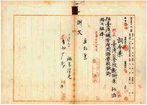 一一四 台湾総督府国語学校長本荘太一郎ノ内申ニ依リ大稲花公学校勤務台湾公学校教諭原松冶ヲ台湾総督府国語学校教諭ニ任ス