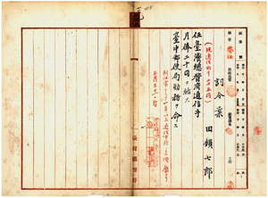 一三九 台中郵便局長野村勘四郎ノ内申ニ依リ台中郵便局通信助手田鎖七郎ヲ台湾総督府通信手ニ任シ台中郵便局勤務ヲ命ス