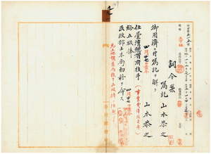 九一 台湾総督府民政部土木局長心得長尾半平ノ内申ニ依リ元臨時台湾土地調査局技手デ台湾総督府嘱託山本恭之ヲ御用済ニ付キ嘱託ヲ解キ、改メテ台湾総督府技手ニ任シ台湾総督府民政部土木局勤務ヲ命ス
