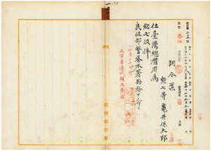 一〇〇 台湾総督府民政部警察本署長代理大津麟平ノ内申ニ依リ台湾総督府陸軍幕僚附陸軍歩兵曹長亀井保太郎ヲ台湾総督府属ニ任シ台湾総督府民政部警察本署勤務ヲ命ス