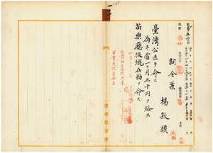 一〇一 台湾総督府民政部警察本署長代理大津麟平ノ具申ニ依リ台湾総督府医学校ヲ卒業シ台北医院ニテ医務ニ従事セシ楊敦謨ニ台湾公医ヲ命シ苗栗庁後暇在勤ヲ命ス