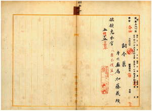 斗六廳屬加藤義頖依願免、附賞與不詮議
