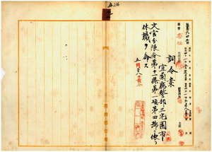 五五 宜蘭庁長中田直温ノ内申ニ依リ負傷ノ為メ右手ヲ切断シタル宜蘭庁警部三宅園市ニ文官分限令第一一条第一項第四号ニ依リ休職ヲ命ス