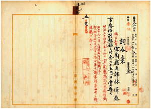 五九 宜蘭街庄長就職ノ為メ文官分限令第一一条第一項第四号ニ依リ休職ヲ命セラレタル宜蘭庁通訳林沢蔡ニ対シ宜蘭庁長中田直温ノ内申ニ依リ事務格別勉励ニ付キ一時金ヲ賞与ス