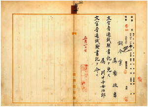 六四 台湾総督府属南政吉ノ文官普通試験書記ヲ免シ、台湾総督府属川中子安治郎ニ文官普通試験書記ヲ命ス