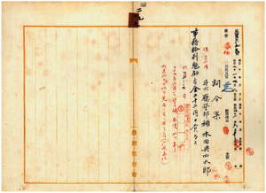斗六廳警部補本田與四太郎賞與