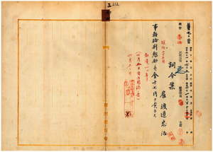 三四 台湾総督府民政部総務局長事務取扱鹿子木小五郎ノ内申ニ依リ御用済ニ付キ解職サレタ台湾総督府雇渡辺忠治ニ在職中事務格別勉励ニ付キ一時金ヲ賞与ス