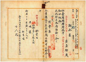 四三 台湾総督府民政部土木局長心得代理高橋辰次郎ノ内申ニ依リ元北海道庁技手岩島郁蔵ヲ台湾総督府技手ニ任シ民政部土木局勤務ヲ命ス
