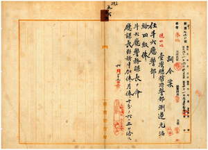 五六 斗六庁長山口利文ノ内申ニ依リ台湾総督府警部淵辺元治ヲ斗六庁警部ニ任シ斗六庁警務課長ヲ命シ庁課長勤務中加俸ス