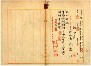 二四 打狗郵便局勤務台湾総督府通信属渡辺卯ハ麻刺里亜ニヨル過労ノ為メ職ニ堪ヘサル旨ヲ以テ辞職願ニ依リ昇級ノ上事務格別勉励ニ付キ一時金ヲ賞与シ本官ヲ免ス
