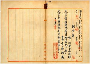六六 台湾総督府属川中子安治郎ニ文官普通懲戒委員会書記ヲ命シ、台湾総督府警部古藤誠蔵ノ文官普通懲戒委員会書記ヲ免ス