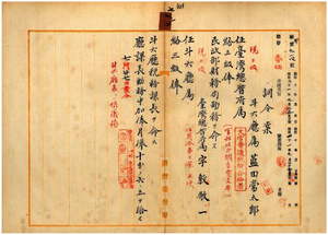 七二 台湾総督府民政部財務局長代理峡謙斉ノ内申ニ依リ斗六庁属藍田常太郎ヲ台湾総督府属ニ任シ台湾総督府民政部財務局勤務ヲ命シ、台湾総督府属宇敷敬一ヲ斗六庁属ニ任シ斗六庁税務課長ヲ命シ庁課長勤務中加俸月俸一〇分ノ六・五ヲ給ス