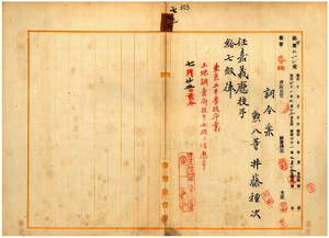 七三 嘉義庁長北原種忠ノ内申ニ依リ土木並埤圳測量等ニ関スル技術ニ従事セシメル為メ元陸地測量部測図手ノ井藤種次ヲ嘉義庁技手ニ任ス