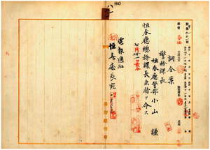 八一 恒春庁長武藤針五郎ノ内申ニ依リ恒春庁警務課長恒春庁警部小山謙ニ恒春庁総務課長兼務ヲ命ス