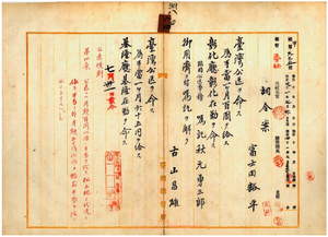 八四 台湾総督府民政部警察本署長大津麟平ノ具申ニ依リ富士田豁平ニ台湾公医ヲ命シ彰化庁彰化在勤ヲ命シ、臨時台湾公医事務嘱託秋元勇三郎ニ御用済ニ付キ嘱託ヲ解キ、古山昌雄ニ台湾公医ヲ命シ基隆庁基隆在勤ヲ命ス