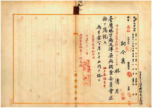 九二 台湾地方病及伝染病調査委員長民政長官大島久満次ノ内申ニ依リ曩ニ阿片鵬者治療上治鵬剤トシテ塩酸ヘロイン及ナルコチンノ合剤ヲ最適当ナリトノ説ヲ唱ヘタル赤十字社台湾支部医院医務嘱託林清月ヲ目下当調査委員会ガ台北医院ニ於ケル阿片鵬治療法ノ研究ニ従事セシムル為メ台湾地方病及伝染病調査委員会医務ヲ嘱託ス